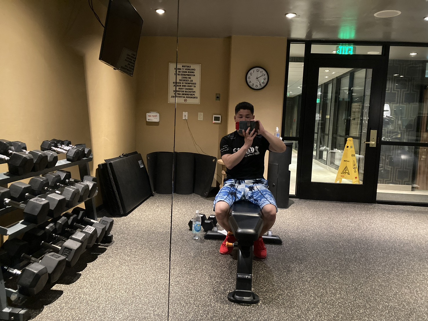 ホテルのジムで初日以外毎日筋トレしてましたが、翌日の試合後にシアトルを出発するのでホテルでの最後の筋トレです!