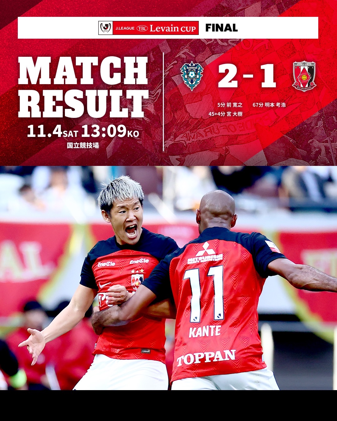私の大好きな浦和レッズがアビスパ福岡との決勝戦を国立競技場で行われました!