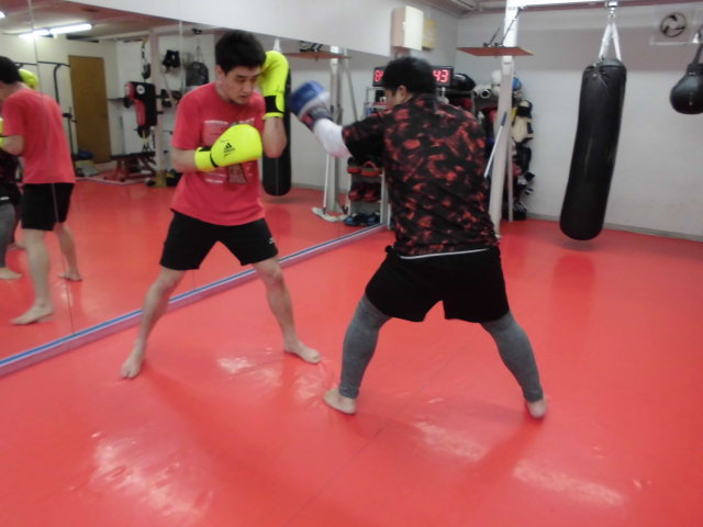 パンチ&キックを受け止めてディフェンス練習になります(^_-)-👊
