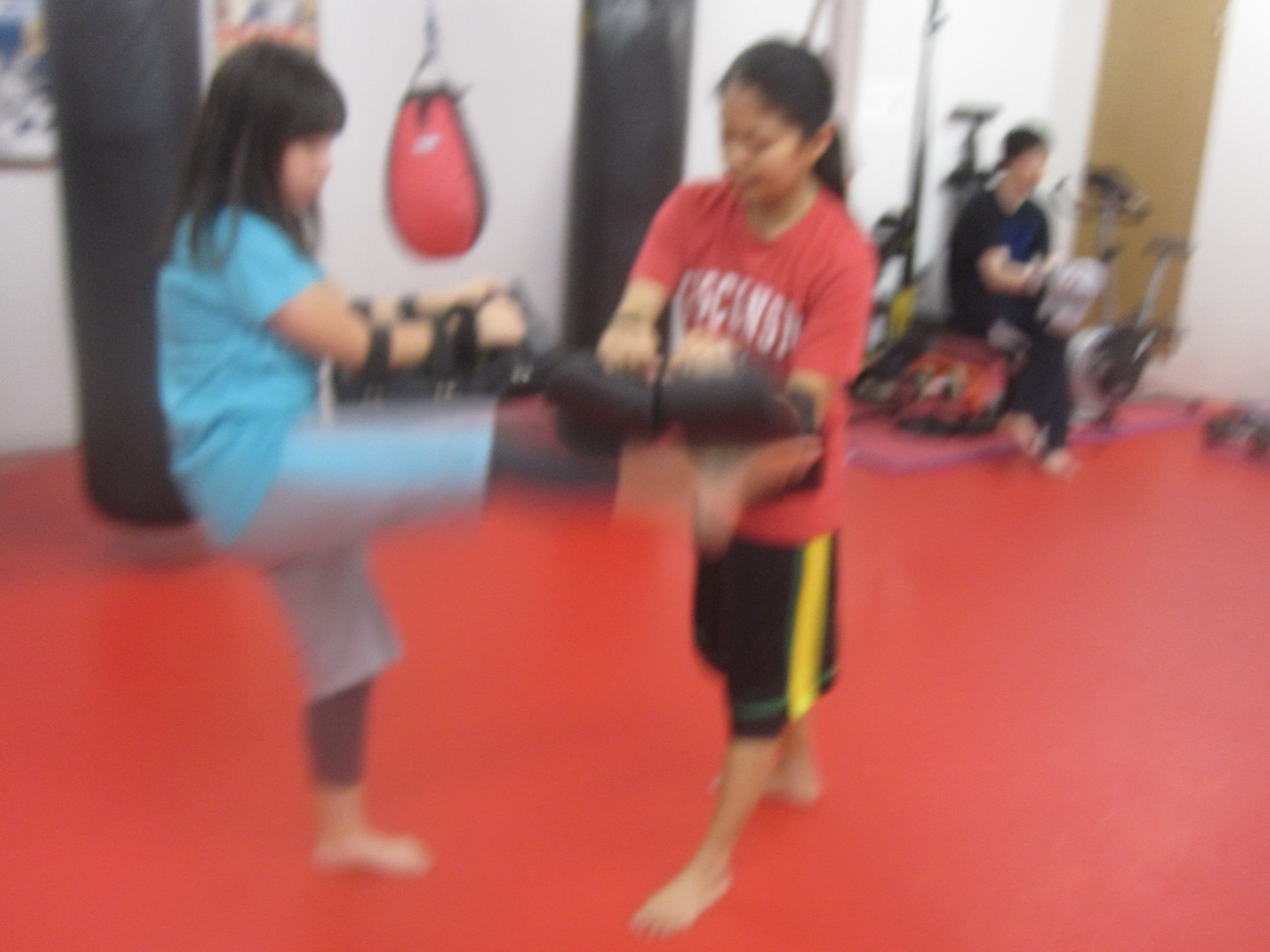 お互いに初心者でキックボクシングを通じての初歩トレーニングです! 方や選手を目指す会員! 方や小学生会員! 最初の基本は、みんな一緒です(*^^)v