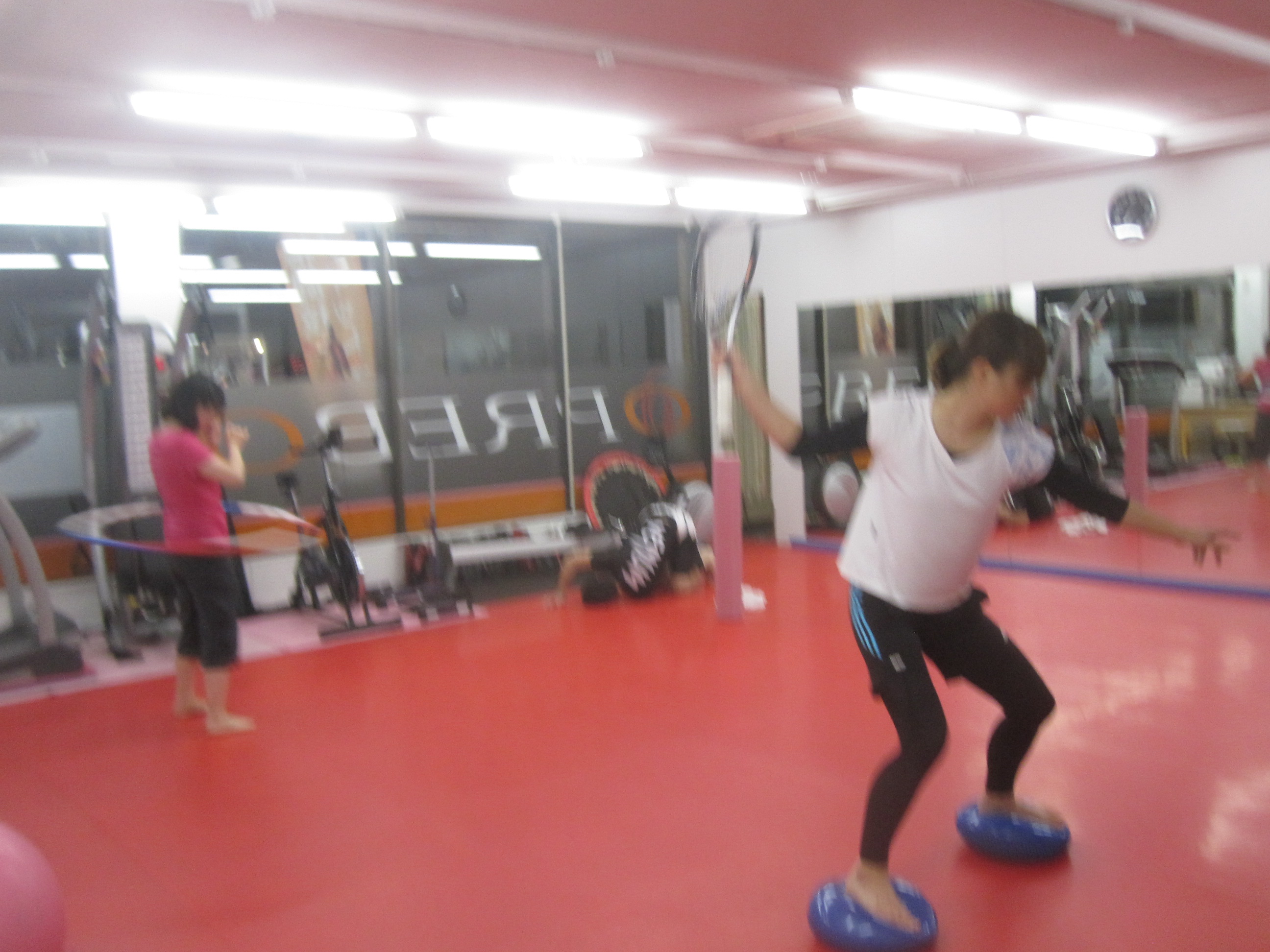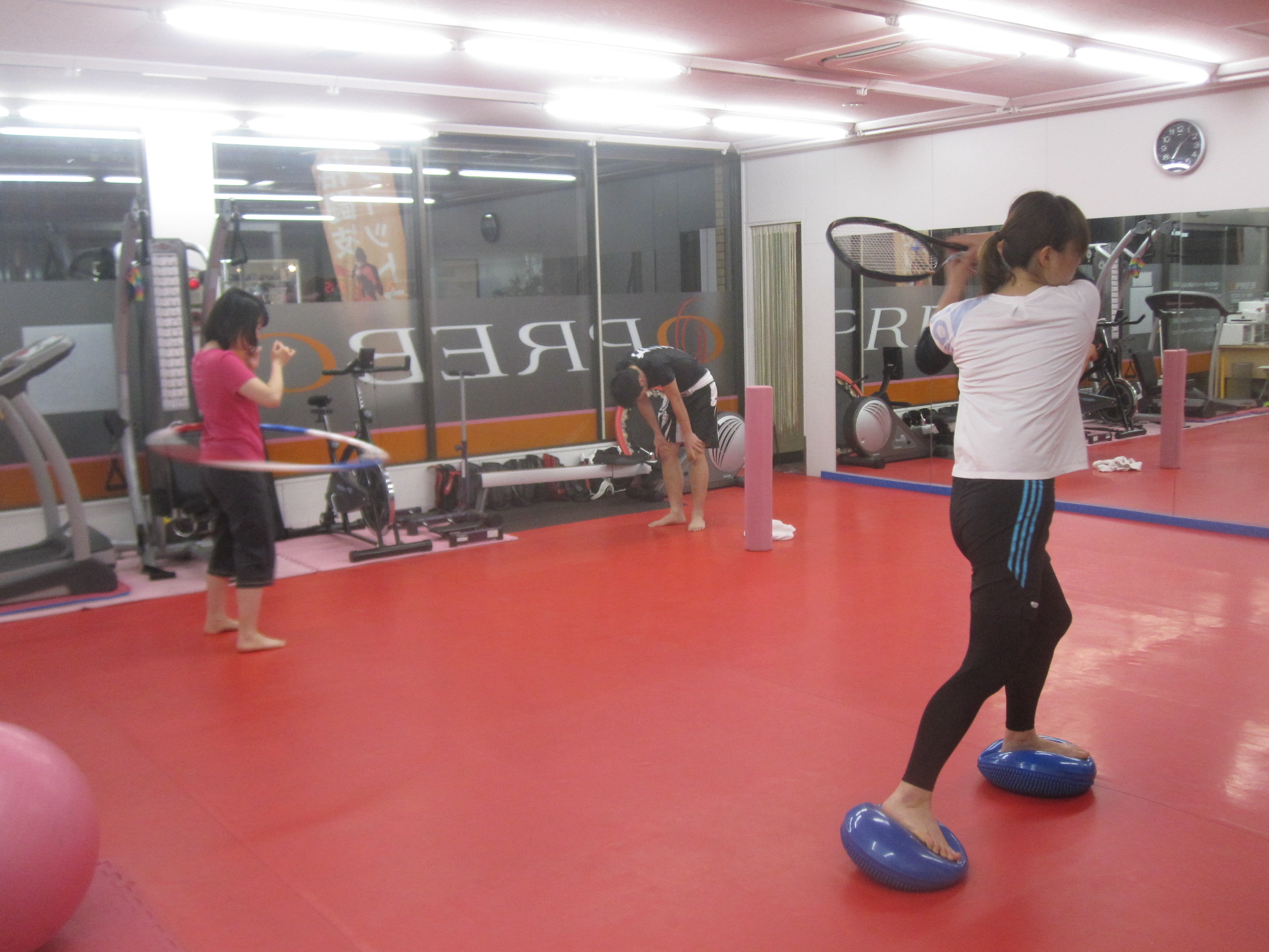 PREBOの会員さんは、キック以外にもテニスや卓球やゴルフなど運動好きな方が多くいらっしゃいます(*^_^*)会員さんが少ない時は、素振りしても良いですよ(^_-)