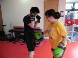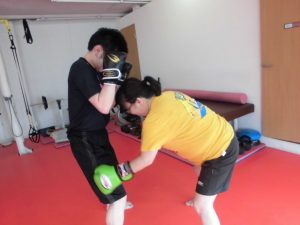 ダイエット会員さんに選手会員の腹と脚を殴ってもらい打たれ強さを身につけます!(^^)! ダイエット会員さんは、ヒィヒィ言って殴っていました!(^^)!