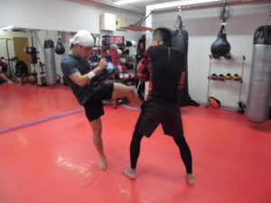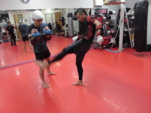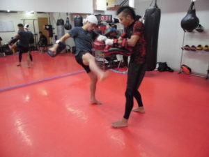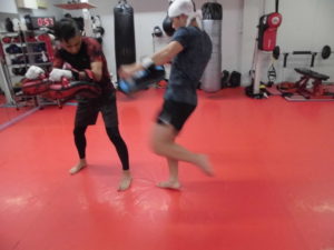 キックミットをお互いに持ち蹴り合い\(^o^)/