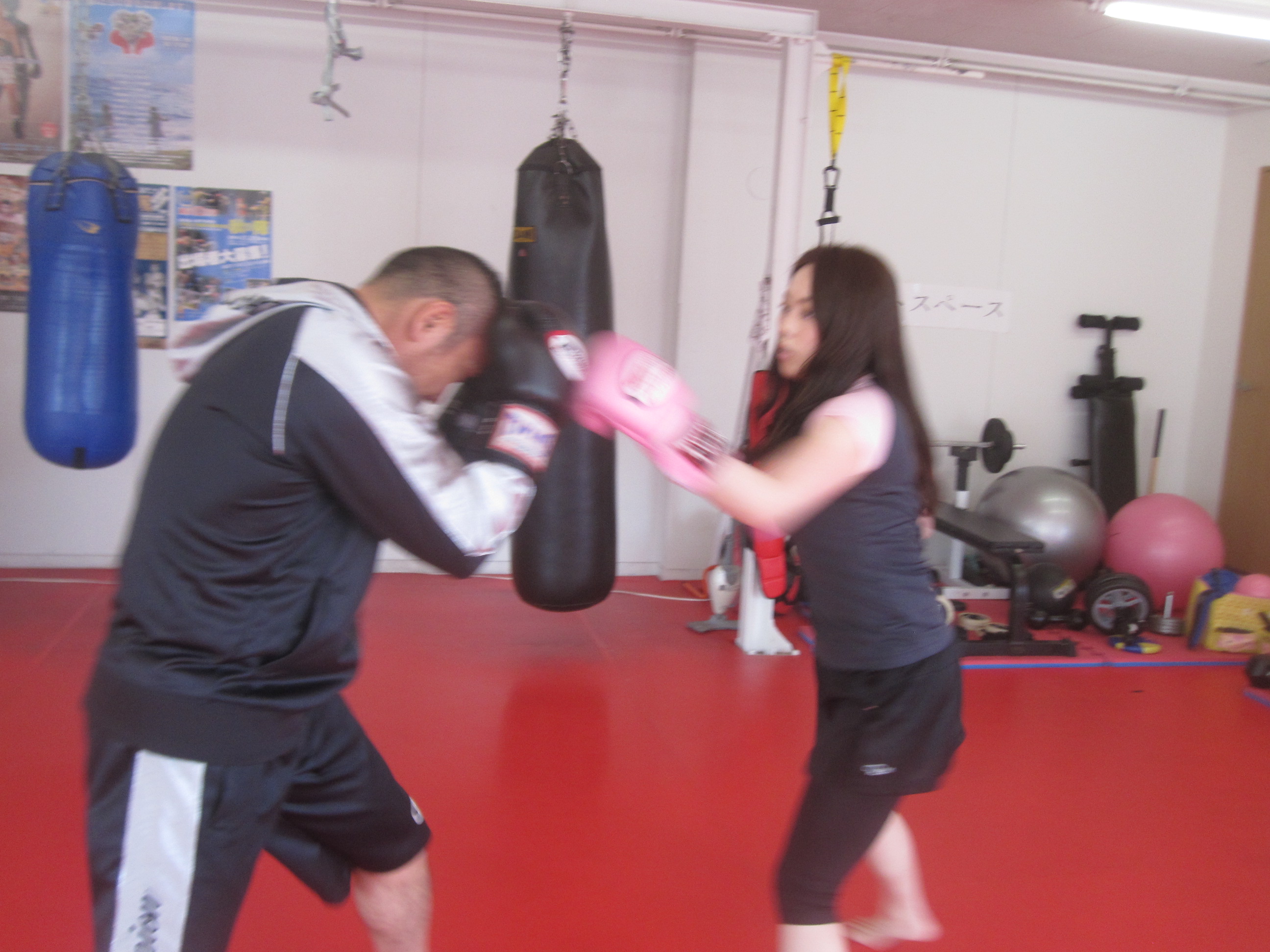 昼過ぎにお越しの元気イッパイな奥様(*^^)v 仕事が忙しく今年初PREBOの部長会員さん(*^^)v 今日初顔合わせの会員さん同士で闘って頂きました!(^^)! フルスイングの奥様のフック!強い!!(^^ゞ 部長もビックリ(@_@;)