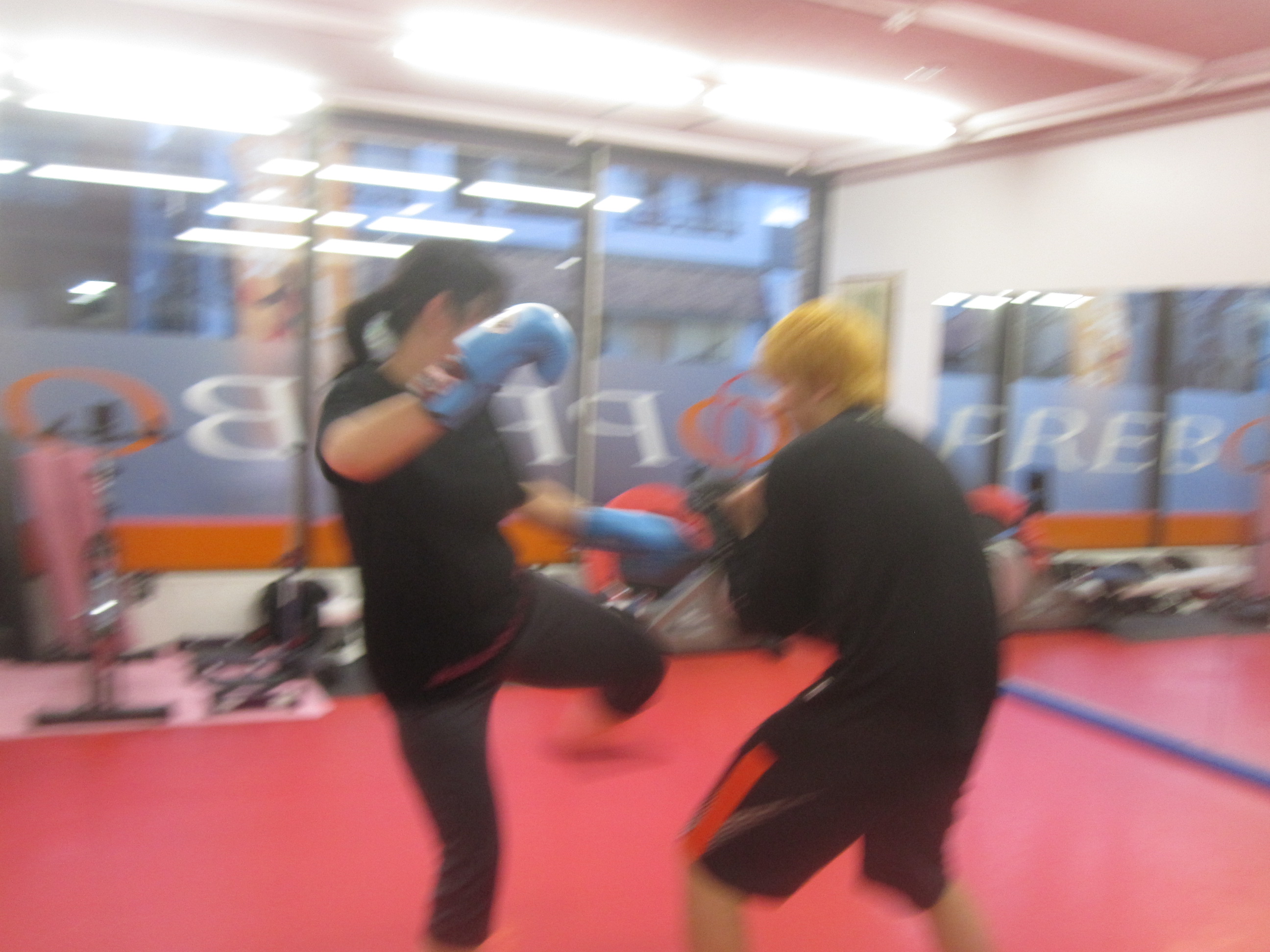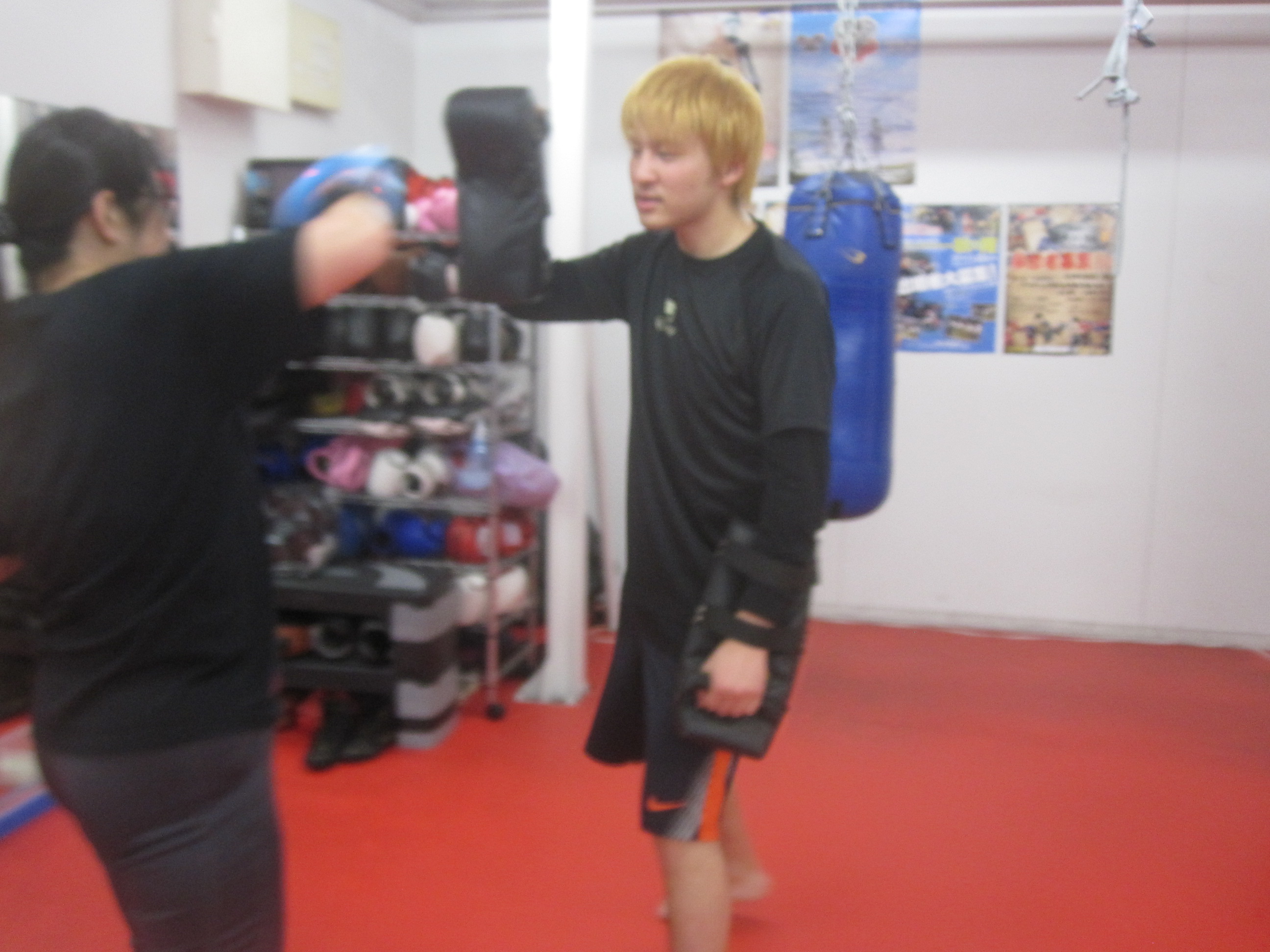 キックボクシングをこよなく愛する美大生は、会員さんに色々と御指導してくれます(*^^)v トレーニング風景が絵になります(*^。^*) 流石に美大生です(^O^)/