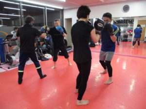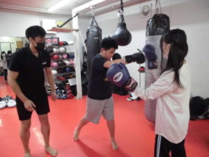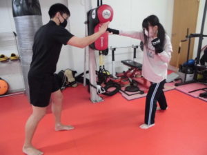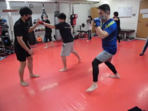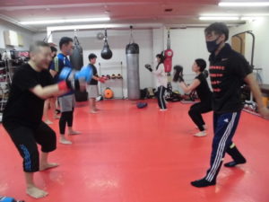 キックボクシングの基本の構えや綺麗なフォ-ムで怪我をしにくい構えを行いました。