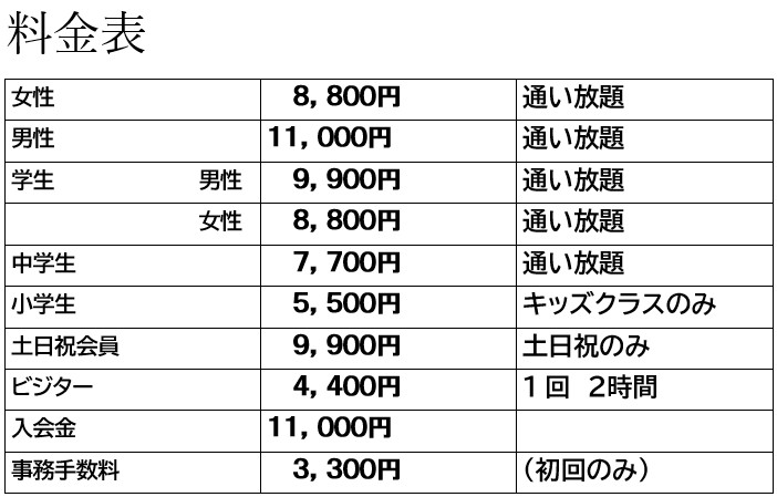 入会金、最初の月の月謝