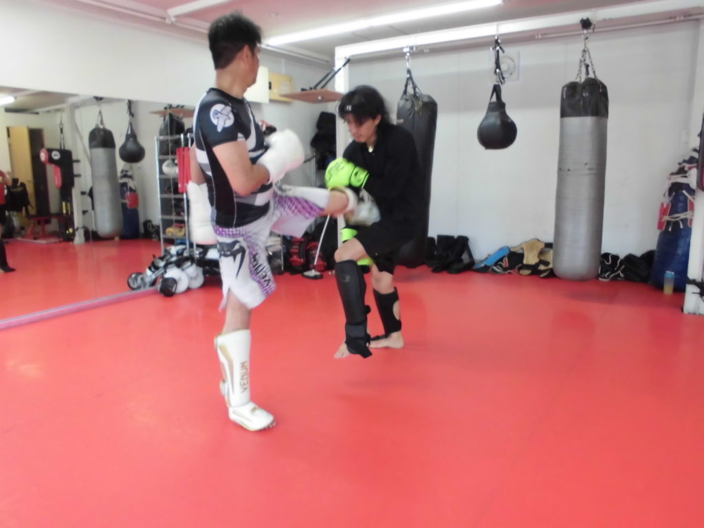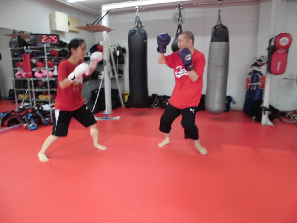 梅雨空のPREBO内は晴天でキックボクシング日和です。